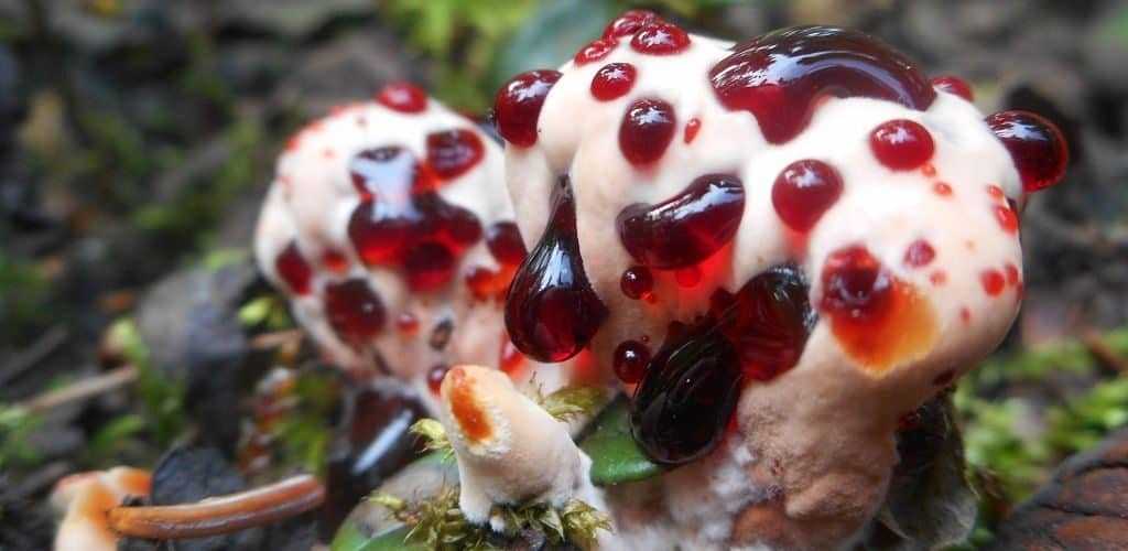 Но чаще всего его называют «кровавый зуб». Это связано с тем, что у старых грибов по краям появляются длинные острые отростки, которые напоминают клыки. А красная жидкость, в виде капель на поверхности шапки, похожа на кровавые пятна. Внешний вид притягивает и одновременно отпугивает людей.