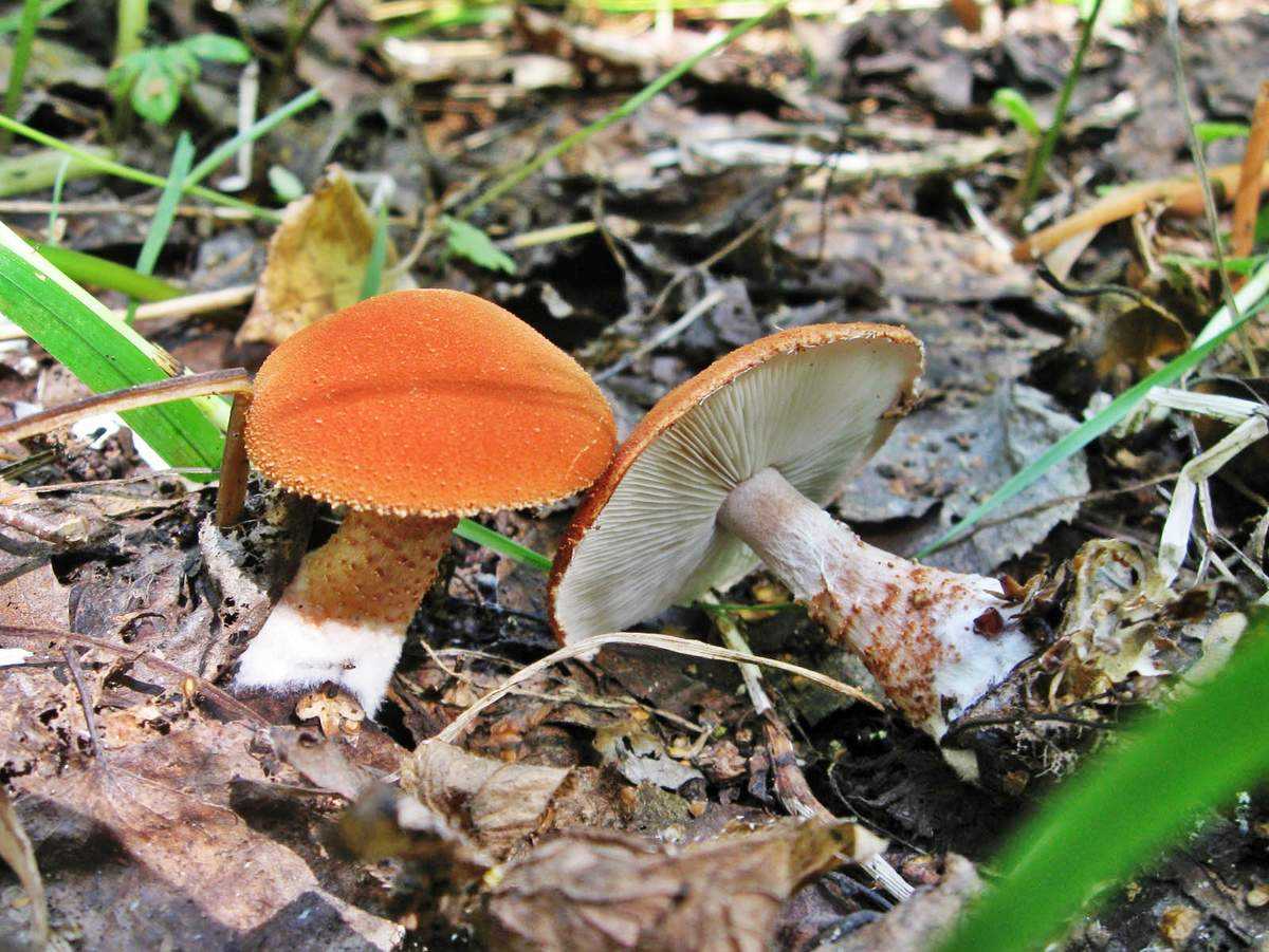 - Бледная поганка. Ядовита. Отличия: более высокая и толстая ножка вырастает из яйцевидной белой вольвы. Кольцо-юбка с бахромой на ножке направлено вниз.