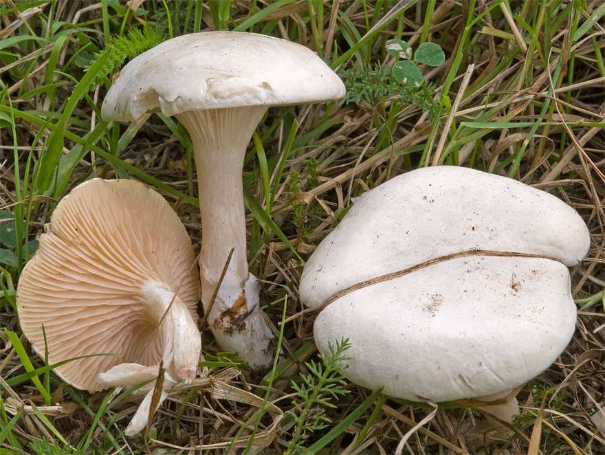 Еще одним ядовитым двойником дымчатой рядовки выступает беловатая говорушка. Токсичный гриб отличается от съедобной говорушки такими особенностями: