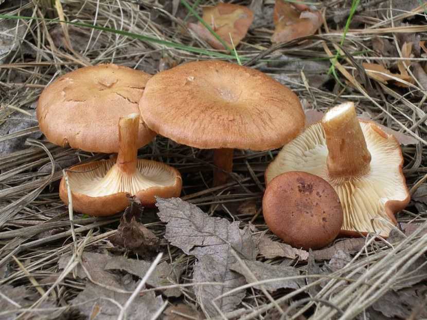 Говорушка перевернутая (леписта оборотная). Шляпка диаметром 4-8 см, по мере роста гриба становится широковоронковидной, кирпично– или красно-желто-бурая, со временем выцветает, в сырую погоду блестящая. Пластинки частые, низбегающие на ножку, светло-желтые, потом буро-желтые, песочно-охристые. Мякоть тонкая, серовато-желтая или палевая, светло-буроватая, со слабым кисловатым запахом. Ножка корневидновытянутая в основании, часто изогнутая, жесткая, сплошная, затем полая, рыжеватая, обычно светлее, чем шляпка, или ржаво-бурая. Говорушку перевернутую можно найти в сосновых лесах и посадках на хвойной подстилке, в смешанных лесах на опаде. Плодовые тела образуют большие группы в августе – октябре.