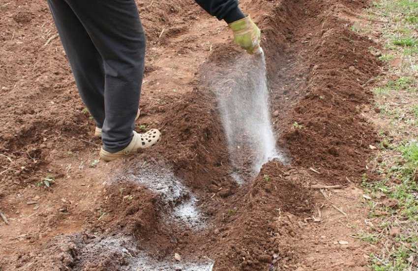 Между рядами рассыпают древесную золу против колорадского жука. Если же почва не удобрялась, при выращивании культуры используют помет, навоз, перегной. Следят, чтобы не возникало избытка азота, иначе все силы растений направятся на рост зеленой массы, а не клубней