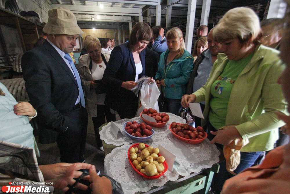Для наглядности гостям демонстрируют четыре вида уральской картошки: «Каменскую», «Ирбитскую», «Горняк» и «Люкс». Это раннеспелые сорта, которые были высажены 16 мая. Клубни выкопаны сегодня и в среднем урожайность сейчас составляет 450 граммов с куста.