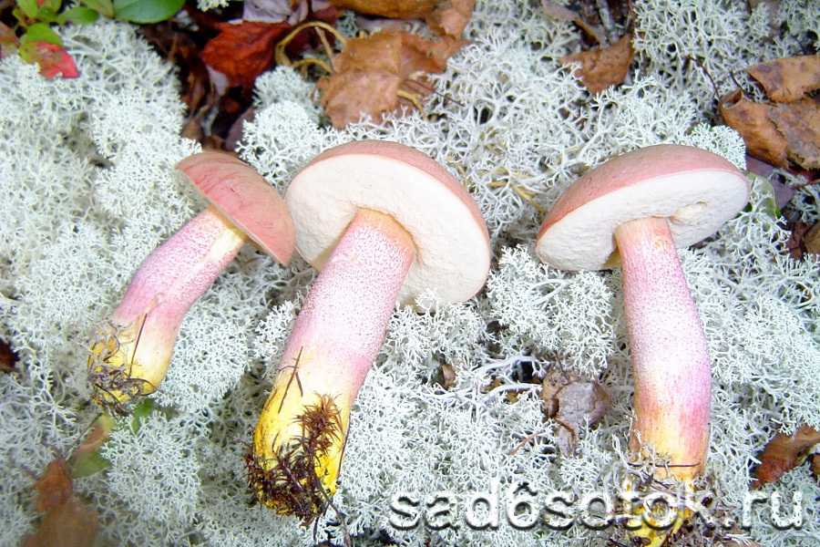 - Окрашенноногий. От своих собратьев отличается более выпуклой широкой шляпкой и особым – розоватым – окрасом чешуйчатых ножек. Трубчатый слой тоже может иметь розовый оттенок. Встречается в сухих дубовых и дубово-сосновых лесах, под березами.
