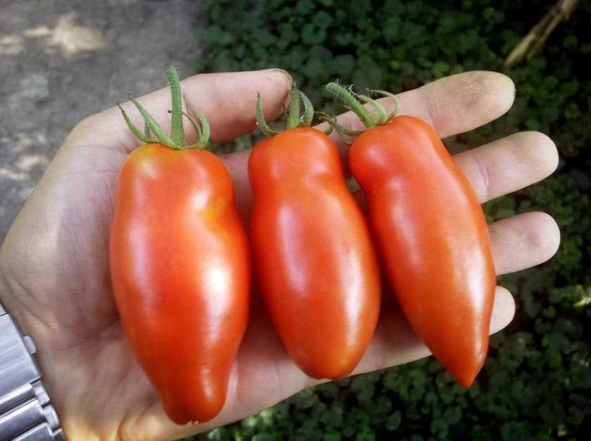 У них довольно необычная форма – удлиненная, на конце носик, так что сослепу этот помидор можно спутать с толстым красным перцем. У него плотная кожура, весит один помидорчик более 50 граммов, он мясистый, семян не так много. На вкус кисло-сладкий, как мы любим – в России предпочитают сложный, неоднозначный вкус. Он даже слегка островатый. И очень ароматный, что всегда словно бы прибавляет вкусности.
