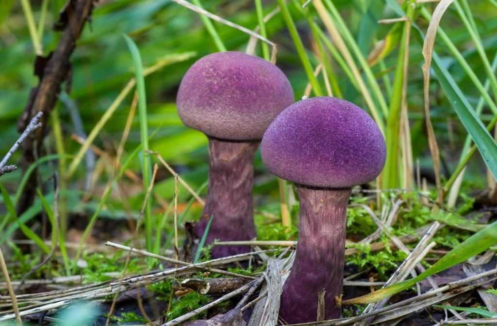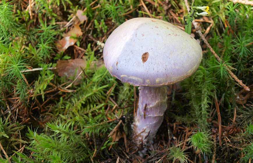 У обеих разновидностей похожи только ножки и структура плодового тела. А вот шляпки грибов совершенно разные. У фиолетового вида она окрашена насыщенным лилово-фиолетовым цветом. Кроме того, фиолетовые грибы предпочитают закрытые местности, а синеножка любит открытые солнечные полянки.