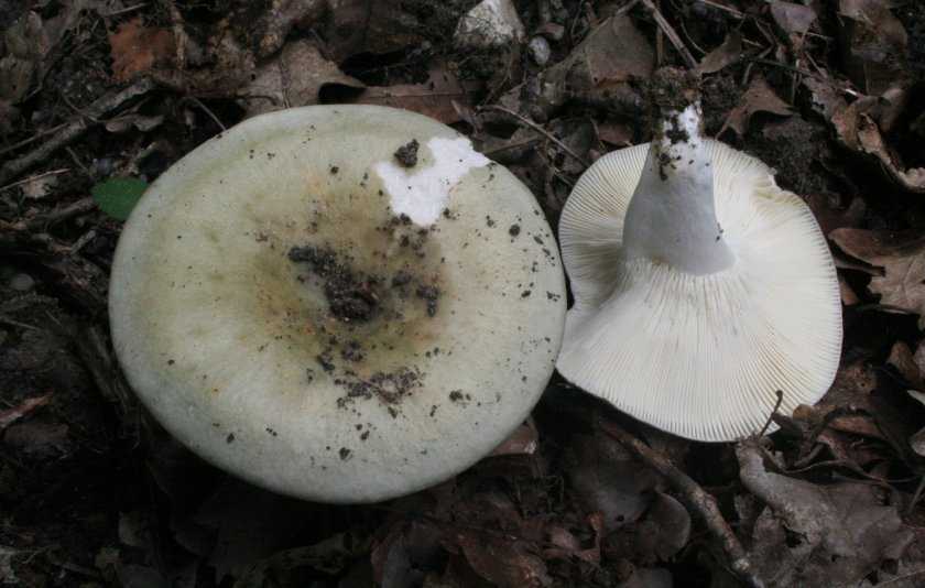 Один из самых опасных грибов, смертельно ядовитая бледная поганка, похожа на зеленые сыроежки. Зеленоватая глянцевая шляпка, диаметром до 15 см, частые белые пластики и нейтральный вкус – вот основные сходства этих видов.