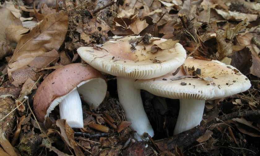 - Все сыроежки на внутренней стороне имеют пластинки белого цвета, белые ножки, без чешуек, пленок, колец. Срезанные грибы практически не меняют окрас. Они остаются белыми (редко – едва желтеют).