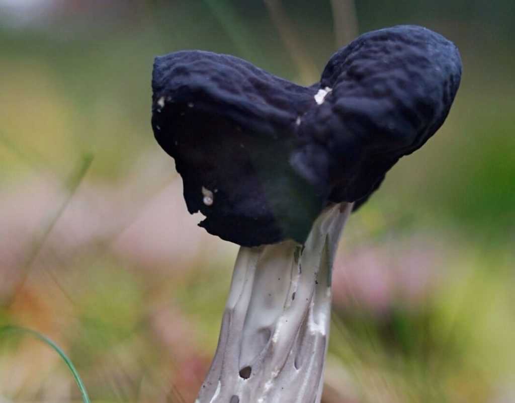 Гриб лопастник длинноножковый (Helvella macropus) приметен издалека.