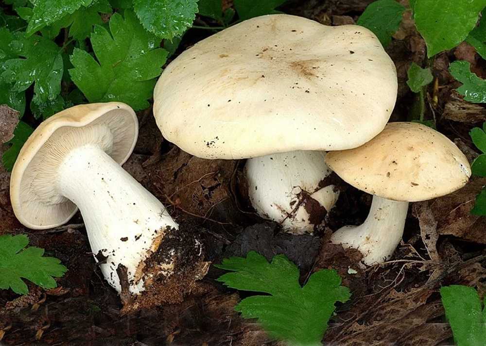 Рядовка гусиная или двухцветная. Гриб кремового или бежевого цвета, плотный с диаметром шляпки максимум 15 сантиметров. Беловатые пластинки под шляпкой довольно часто расположены.