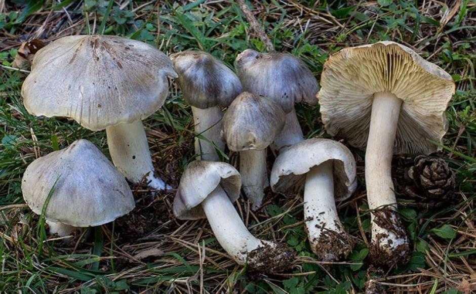 - рядовка тигровая (крупная и очень ядовитая), отличающаяся серой шляпкой, покрытой черными пятнистыми мелкими чешуйками и мякотью, которая при дотрагивании до нее и срезе розовеет, особенно у ножки.