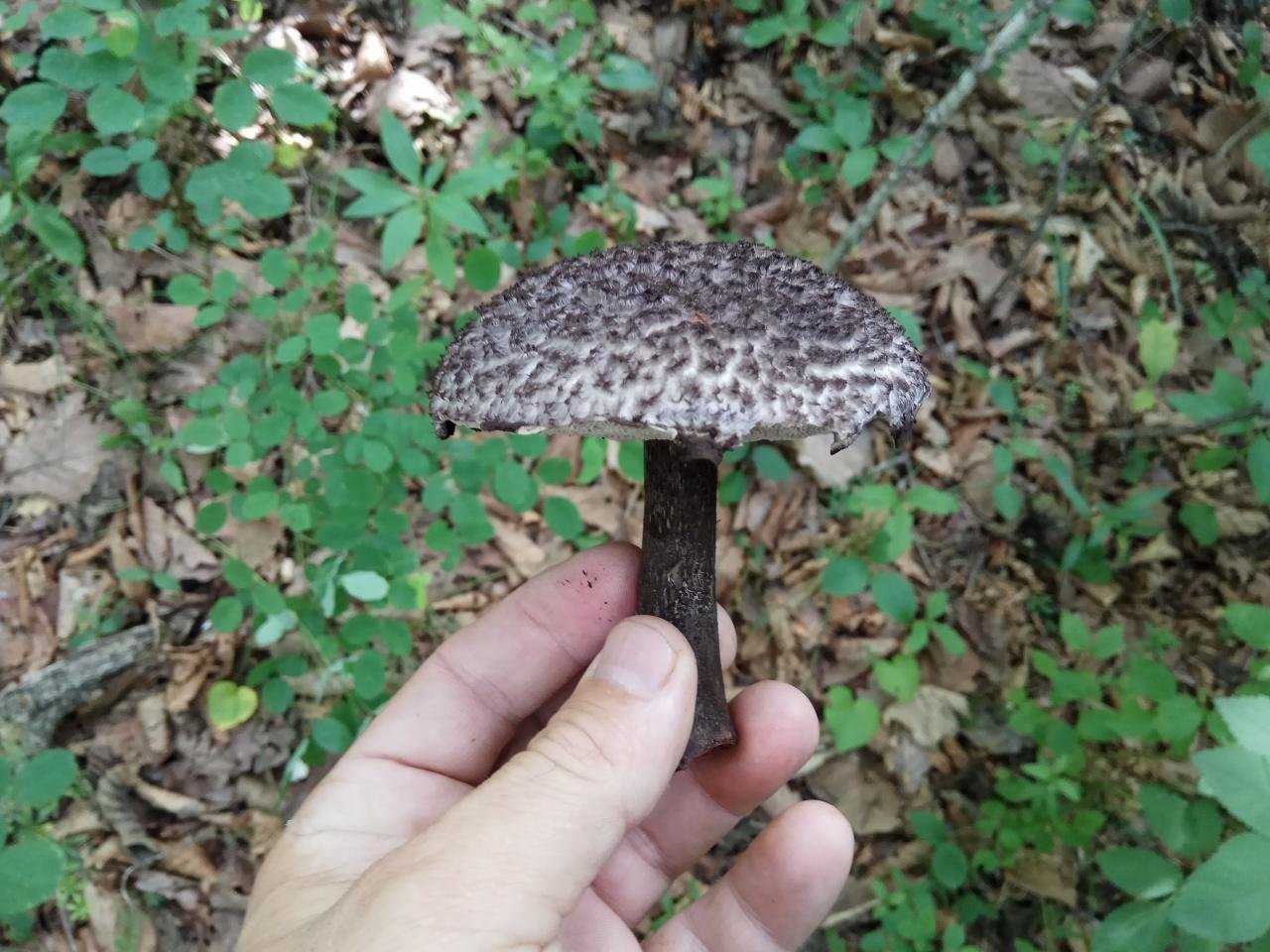 - Шляпка. По форме она выпуклая, неровная, внешне напоминает сосновую шишку. Диаметр шляпки колеблется в рамках 5-12 сантиметров. Ее цвет бывает серо- или черно-коричневым. Поверхность шляпочного отдела шишкогриба покрыта множеством чешуек среднего или крупного размера. Их локализация напоминает порядок расположения щепы на крыше.