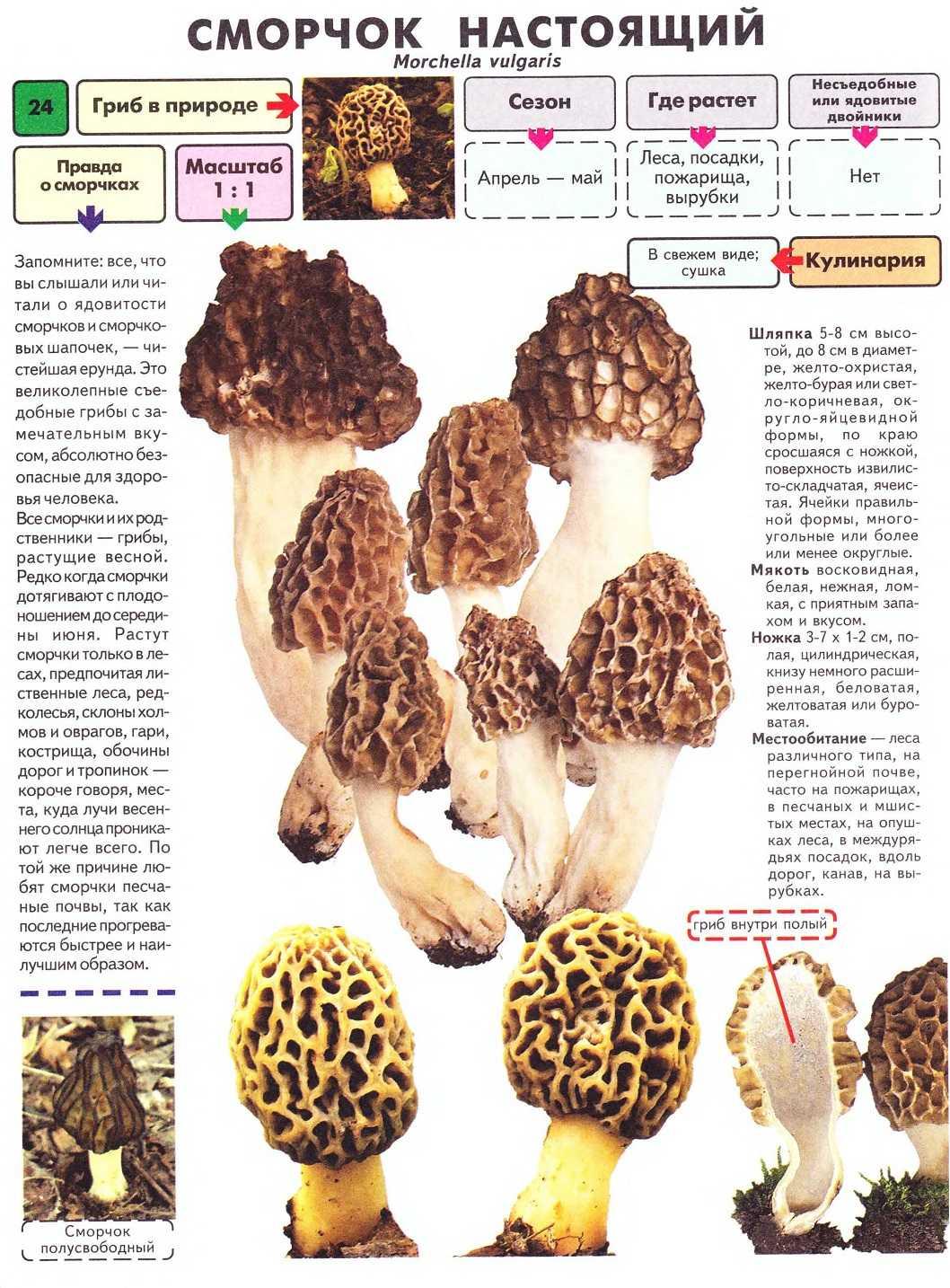 Грибы сморчки — съедобные или несъедобные, виды, как выглядят, с чем можно перепутать: описание, фото