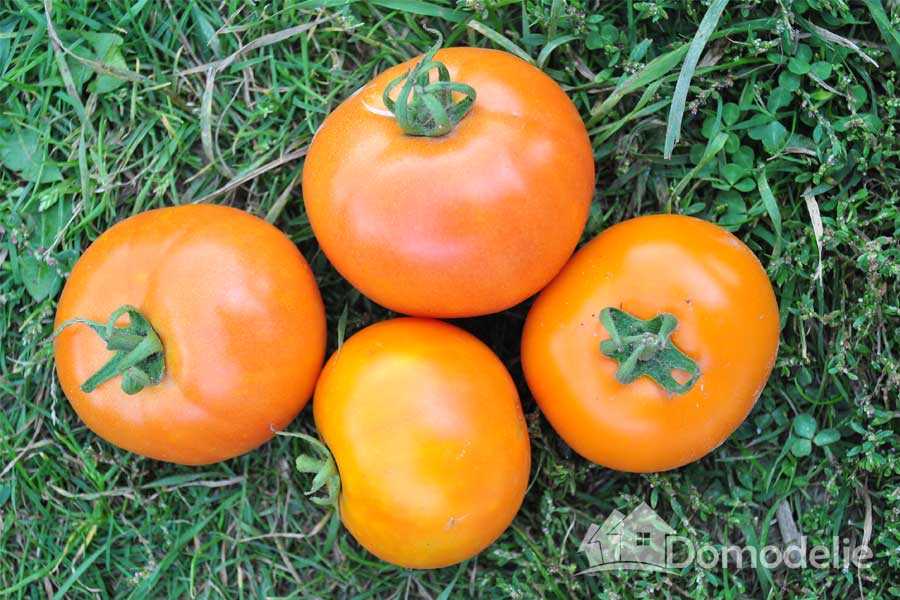 Средний вес золотистых плодов составляет 120-150 г. Плоды обладают отличными вкусовыми качествами, имеют гладкую поверхность и не склонны к растрескиванию. Помидоры Андромеда отличаются высокой урожайностью: с 1 м2 собирают 9-10 кг плодов.