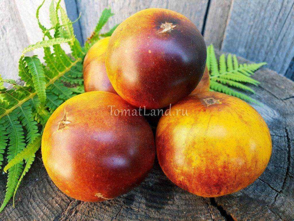 Среднеспелый индетерминантный сорт для открытого грунта и теплиц. Требует подвязки и формирования. Подходит для салатов. | Плоскоокруглый, сильноребристый, неплотный, коричневый, 150-250 г. Вкус хороший. |