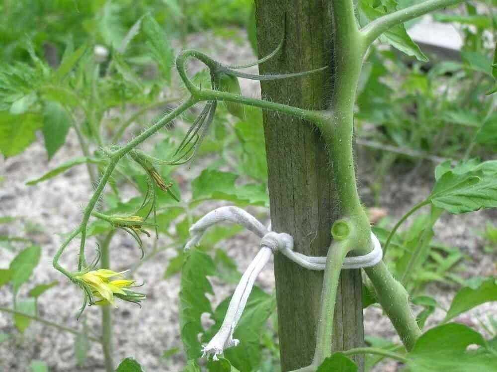 Подвязку нужно осуществлять по мере роста. Материал лучше использовать мягкий и новый. Тот, который использовался в прошлом сезоне, требует обработок фунгицидами или кипячения.