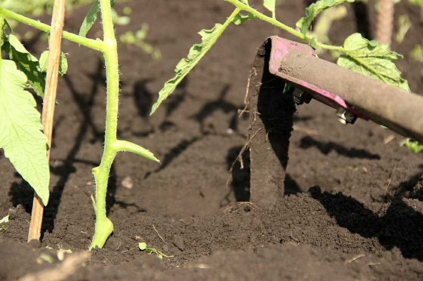 - процесс рыхления — процедура, благодаря которой почва под помидорами обогащается кислородом и хорошо удерживает влагу.