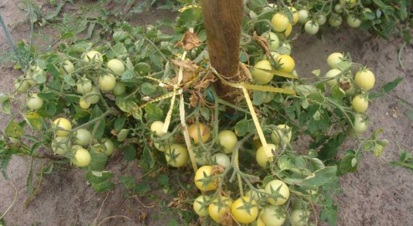 Растение надо подвязывать: для этого берут обычный деревянный кол, к которому прикрепляют стебель веревкой или лоскутом ткани.
