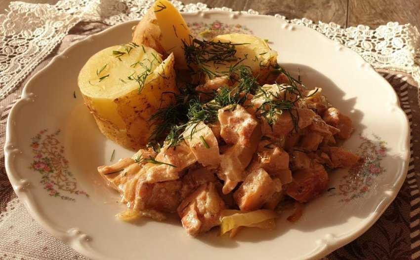 Трутовик со шкварками и сметаной Видео-рецепт: Трутовик со шкварками и сметаной