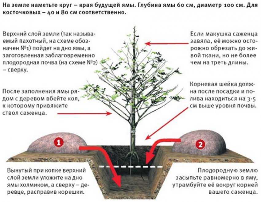 Посадочные ямы готовят за месяц до высадки саженцев. При подготовке действуйте по следующей инструкции: