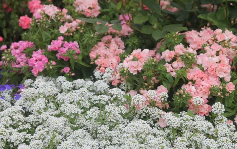 Отлично смотрятся клумбы, составленные из одного алиссума разных цветов.