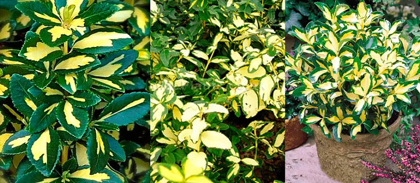 - Санспот – внешне схож с японским бересклетом. Кустик не больше 20 см, компактный. Листья в длину до 2 см, яйцеподобной формы. Овальное золотистый кружочек или пятно на осевой жилке листа, является особенностью данного вида. Морозоустойчив, переносит снижение температур до минус 30, только обязательным условием выживания в такой мороз будет снежная зима.