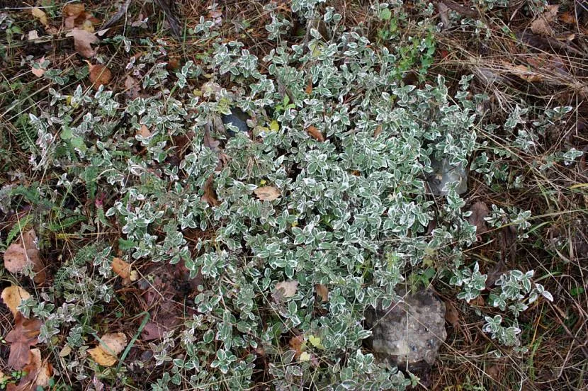 1. Vegetus. С виду напоминает дикорастущий бересклет. Листья достигают 40 мм в длину, имеют яйцевидную форму и темно-зеленый окрас. Прожилки и каемка белого цвета, сами листья матовые. Растение выглядит как небольшой кустарник, достигающий высоты не более 15 см. Если условия для его роста благоприятны, то бересклет достаточно быстро разрастается и образует красивый и пышный ковер. Сорт способен невысоко взбираться по камням и деревьям, при этом прикрывая собственные корни.