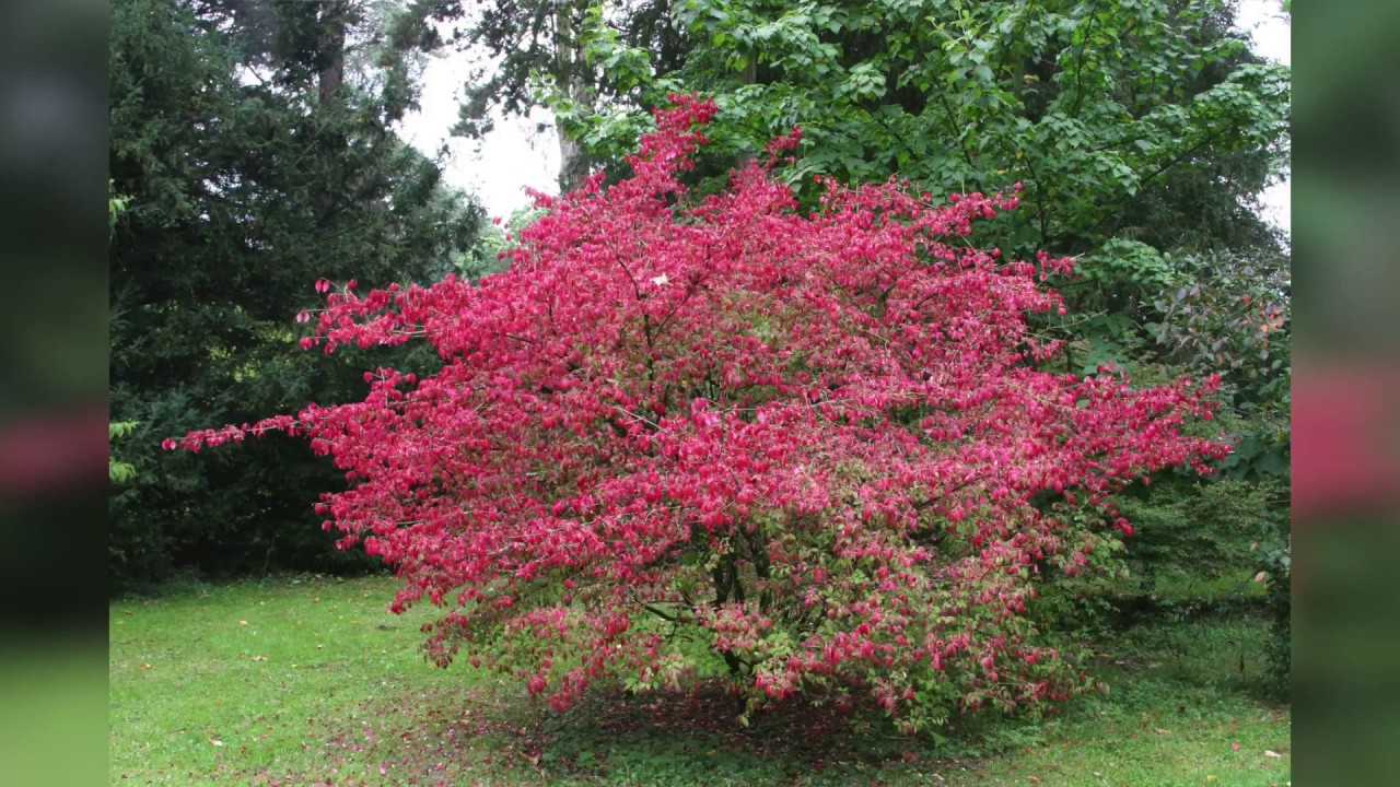 Бересклет европейский «Ред Каскад» (Red Cascade). Кустарник высотой до 3,5 и до 2,5 метров шириной. Листья зеленого цвета, яйцевидные, осенью окрашиваются в пурпурно-красный цвет. Цветки зеленоватые невзрачные, время цветения — апрель-май. С сентября ветви бересклета усыпаны красными коробочками-плодами с ярко-оранжевыми семенами внутри.