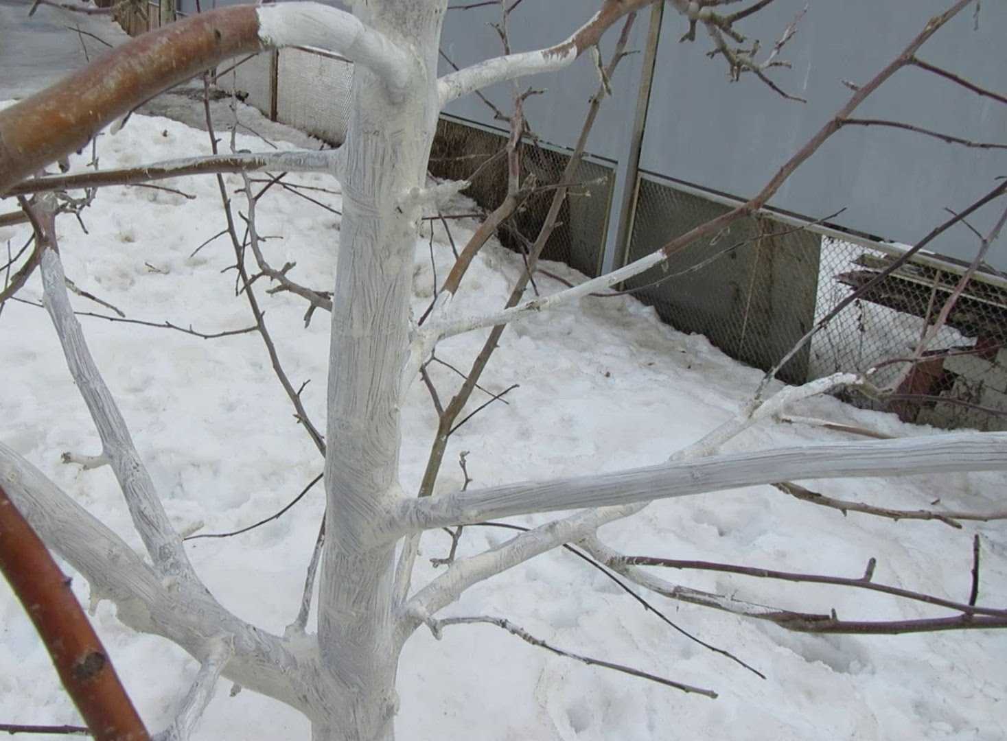 - Побелкой следует обрабатывать скелетные ветки и ствол дерева. Это поможет защитить «Овстуженку» от вредителей, а также улучшить стойкость к низким температурам. Для приготовления побелки понадобятся: пара килограмм мела, 100 грамм казеинового клея и полкилограмма медного купороса на 10 литров воды. Перед проведением обработки кора очищается от мха, омертвевших клеток и лишайников.