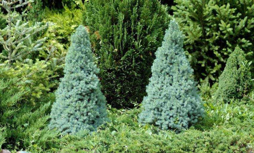 Маленькие «пирамидки» образуют своеобразный бордюр для садовой дорожки. Плотная крона взрослых растений служит фоном и надежной ветрозащитой нежным цветочным культурам. Лояльность к стрижке позволяет создавать живые изгороди. Голубая елочка составляет и самостоятельный элемент садового декора. Используют и как кадочное растение, меняя и комбинируя с подобными видами, достаточно закопать контейнер в землю.
