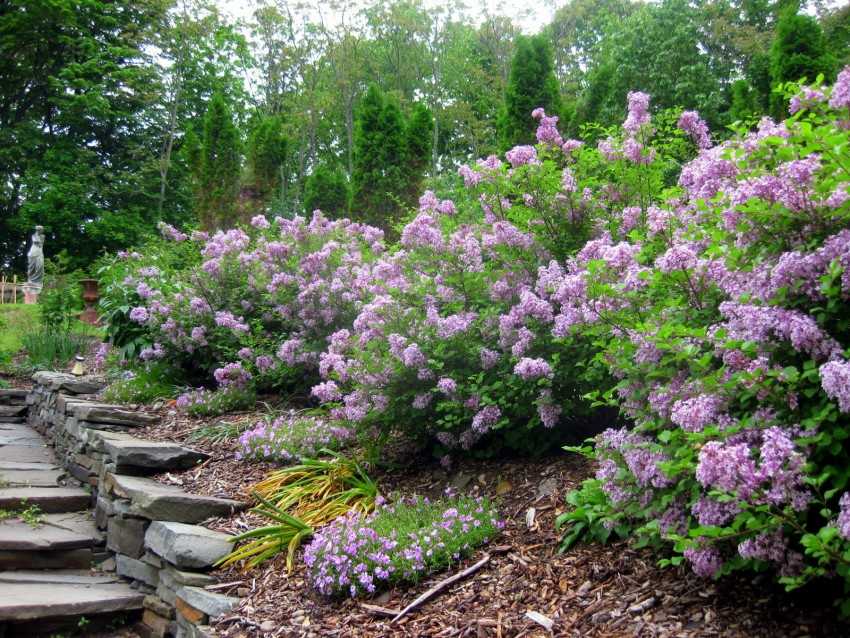 Сирень можно так же обрезать под корень, или же стричь её по высоте 50 см от почвы — будет низкий бордюр.