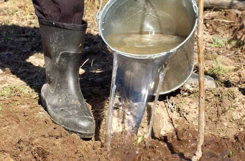 На каждое растение уходит в среднем 30 л воды. Молодым деревьям будет достаточно 20 л. Жидкость заливают из ведра под корень. После полива спустя сутки нужно обязательно проводить рыхление почвы на глубину 3 см.
