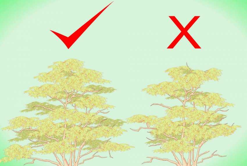 Опытные растениеводы не рекомендуют проводить формировочные обрезки — молодому медленно растущему клёну они абсолютно не нужны, его крона растёт равномерно. Однако, если вы заметили несколько «выбивающихся» веток или хотите замедлить рост, допускается срезать их, но не более того.