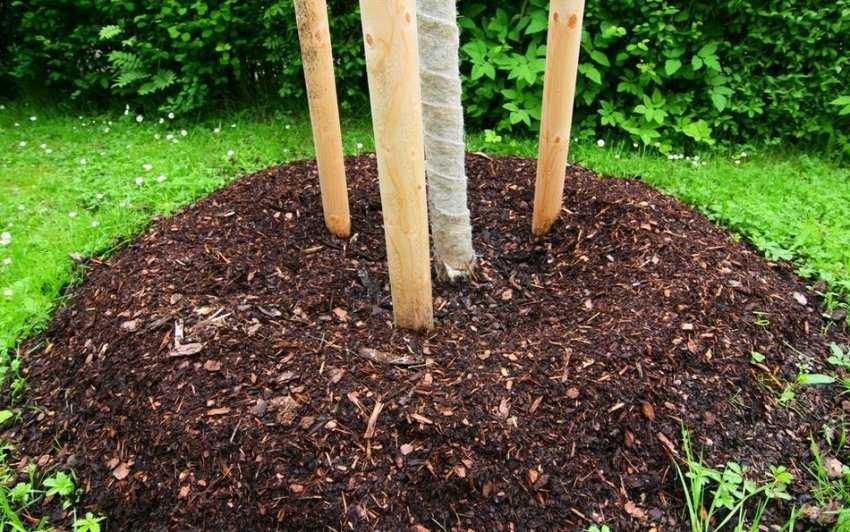 Если пренебречь уходом — листья начнут высыхать и вовсе опадать, что может повлечь за собой и гибель растения. Мульчирование почвы проводится дважды в год — осенью и весной посредством посыпания грунта вокруг ствола корой, листовым перегноем, садовым компостом или щепками. Такая процедура защищает корневую систему от пересыхания летом и промерзания зимой, а также от сорняков.