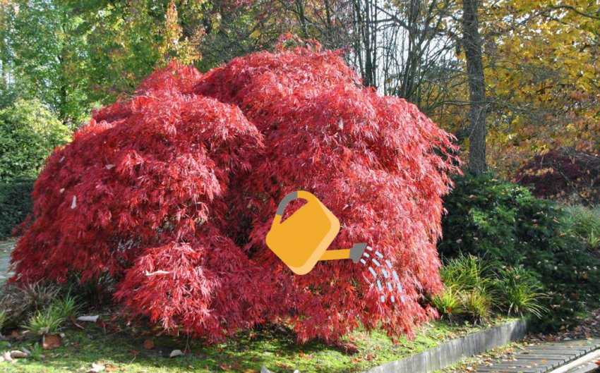 Частота полива напрямую зависит от климатических условий региона выращивания и влажности грунта. В среднем, процедура проводится раз в 2 дня, при этом вам стоит периодически проверять, чтобы воды было достаточно. В летние жаркие дни клёну требуется более обильный полив, а также дополнительное опрыскивание листьев. С наступлением сезона дождей в дополнительном проведении процедуры нет необходимости.