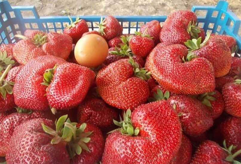 Круглая форма снижает площадь соприкосновения ягод между собой. Это положительно сказывается на внешнем виде. Плотная структура плодов сорта позволяет транспортировать клубнику 2-3 дня без снижения товарных качеств.