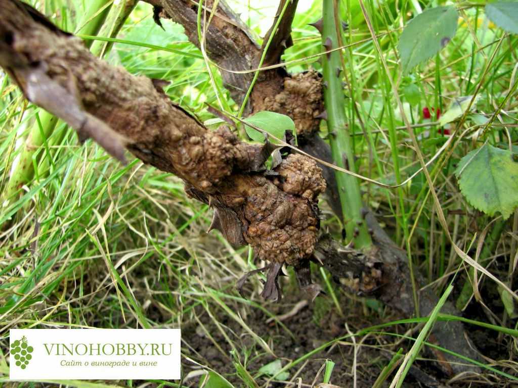 Признаки: образование опухолей под корой. На побегах образуются наросты, которые мешают полноценному функционированию куста. Целостность коры нарушается.