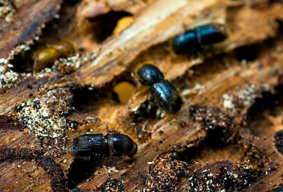 +20°C, из личинок короеда вылупливаются взрослые жуки, выгрызают выход наружу через кору и летят к другим подходящим деревьям, чтобы начать новый цикл воспроизводства.