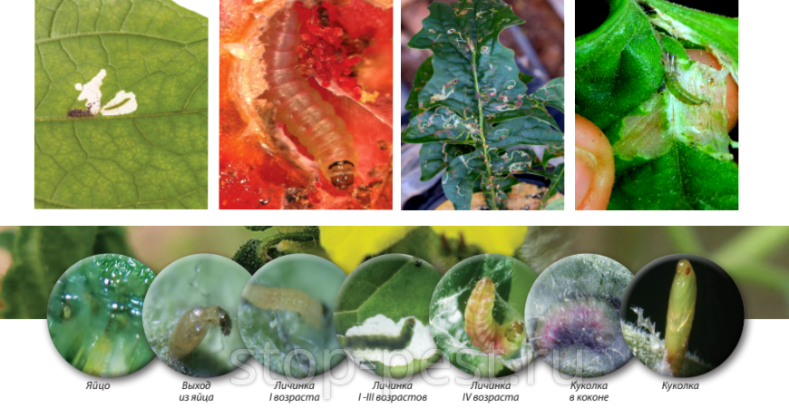 - Принцип действия препарата – кишечный, т.е. чтобы препарат сработал, он должен попасть в пищеварительную систему личинки. Из-за особенностей биологии развития вредителя, это возможно только в момент выхода личинки из яйца и перехода ее на лист растения. Однократная обработка действует исключительно на личинок 1-го возраста, которые в момент обработки выходят из яиц и вгрызаются в лист. В дальнейшем, личинки 2-3-4 возраста, живут внутри листа и обработки препаратом «Лепидоцид» поэтому поколению вредителя не окажут существенного эффекта. На яйца, куколку и бабочку препарат не действует. Для воздействия на 100% популяции необходимо провести минимум 5 обработок с интервалом в 5-7 дней.