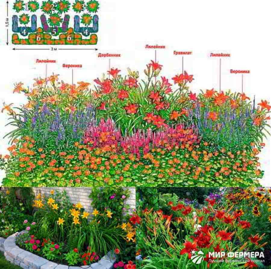 Рисунок 3. Особенности планировки клумбы и сочетание цветочных культур