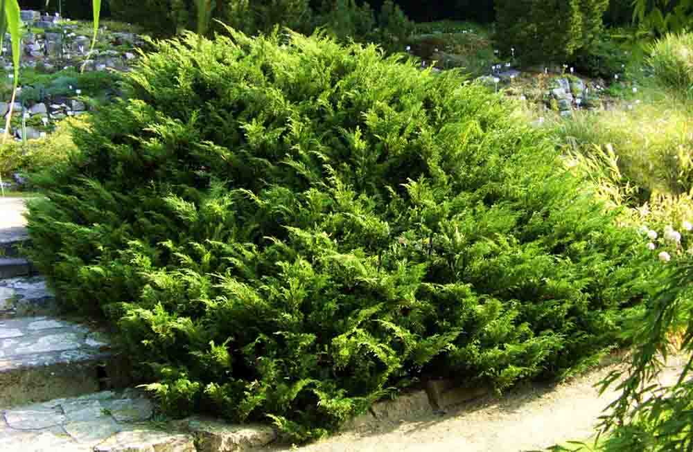 Роскошный можжевельник, совершенно оправдывающий свое название — «старинное золото». Он практически как куб: высотой и шириной до 2 м. Желто-бронзовой окраски хвои сохраняется и зимой. Очень устойчив.