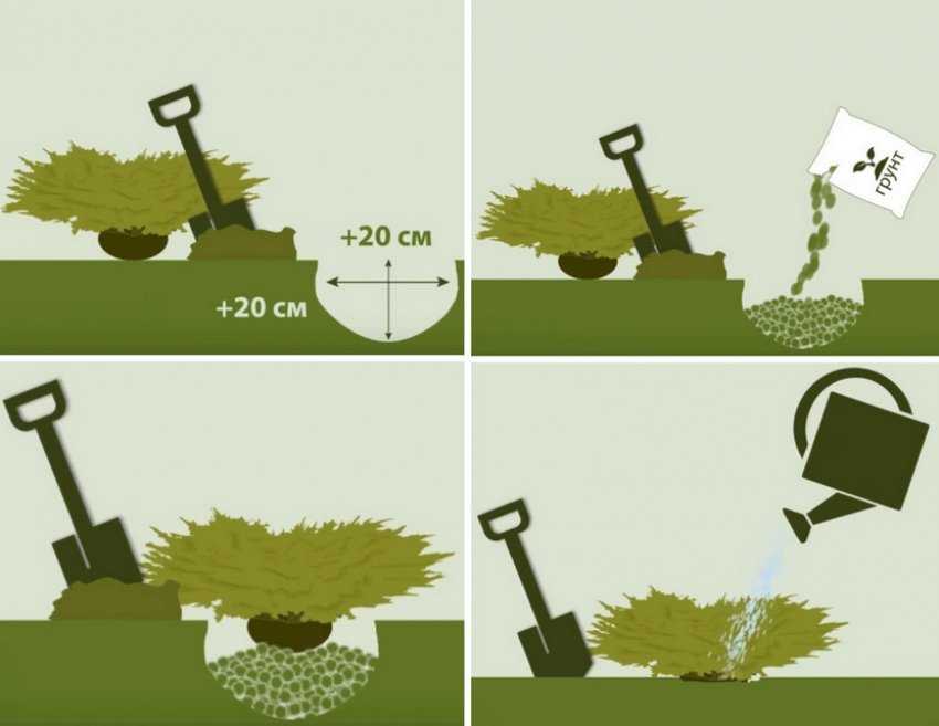 Обязательно должен быть сохранён земляной ком — это послужит залогом хорошей приживаемости куста. Доступ свежего воздуха к голым корням может привести к гибели растения.