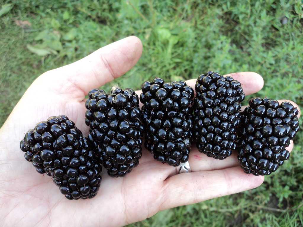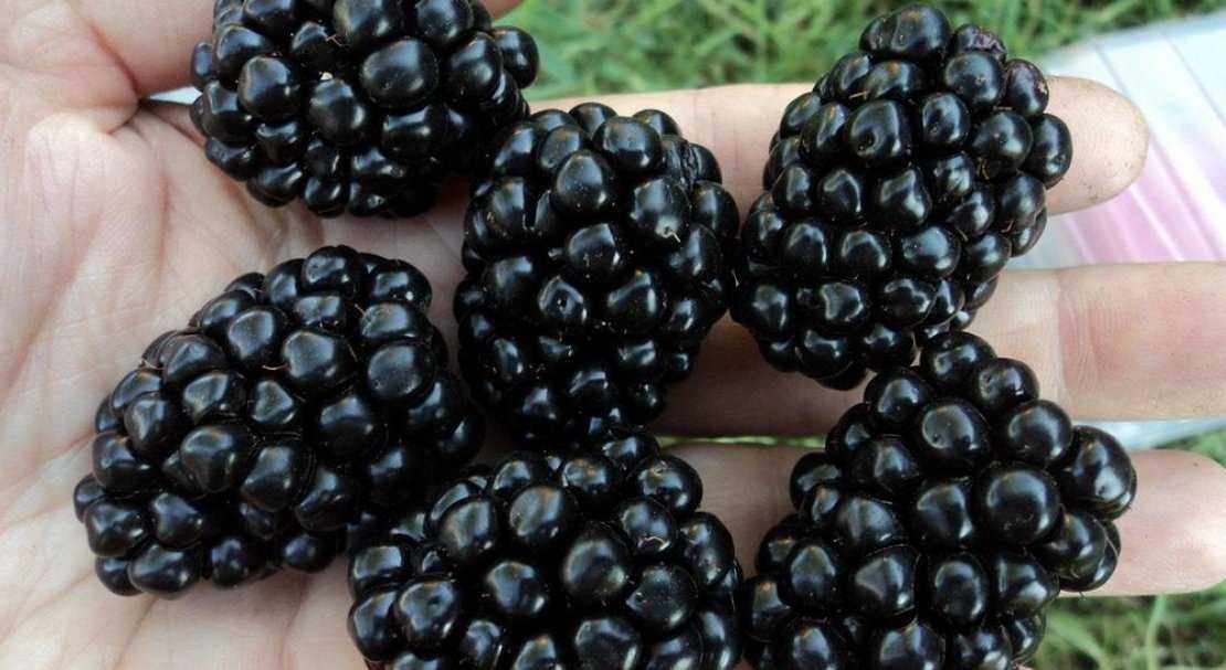 Поспевший урожай лучшего из сортов бесшипной ежевики.