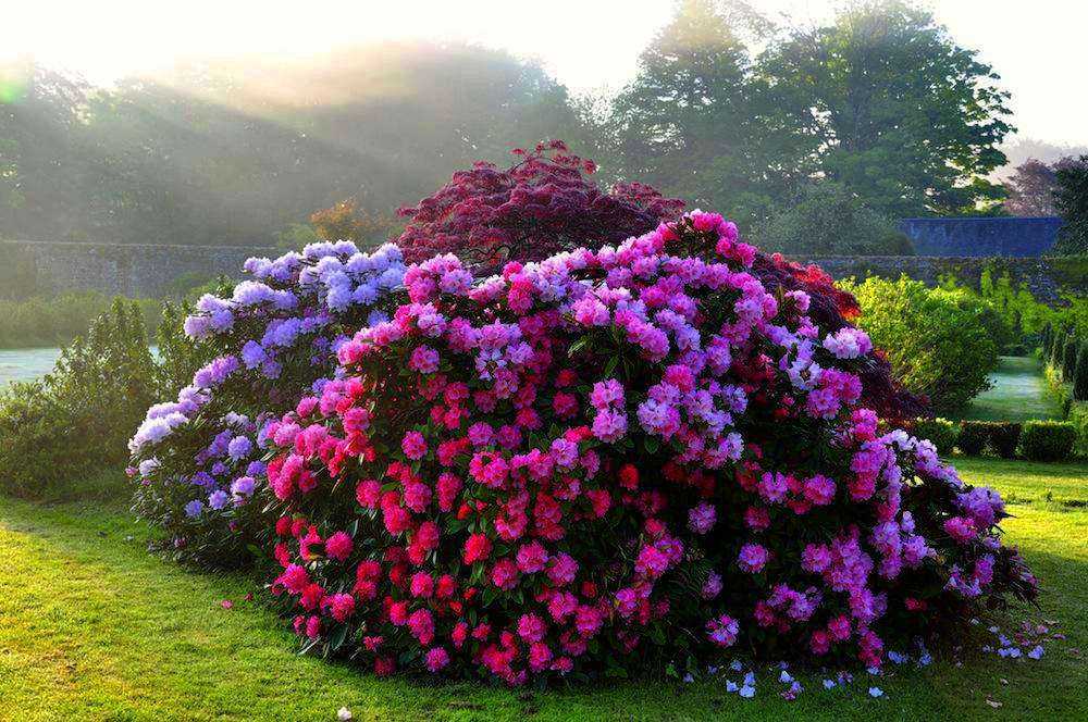 Рододендроны в ландшафтном дизайне используются десятилетиями. Кустарник с красивой листвой, полностью покрывающийся цветами в весенне-летнее время, — необычайное зрелище. Дизайнеры применяют различные способы высадки растения, используя различные сочетания.