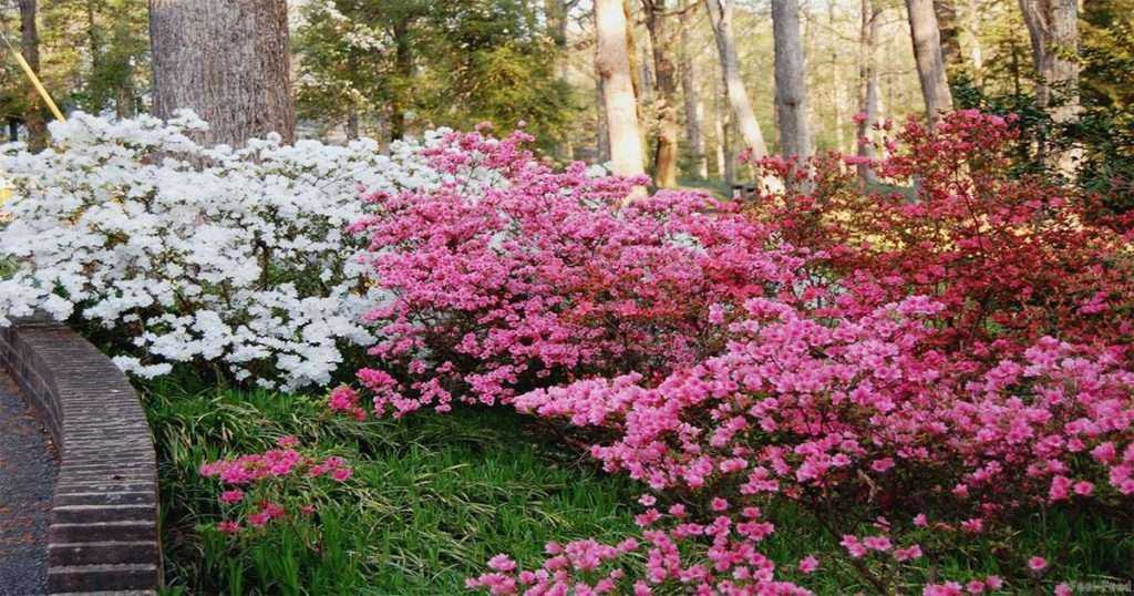 Для создания японского сада используют несколько видов и сортов азалий с различными сроками набора бутонов и цветения. Сложно представить японский сад без кустарника Якушиманского рододендрона. Для большего декоративного эффекта японские кусты высаживают на фоне других крупнолистных деревьев, например, магнолий.