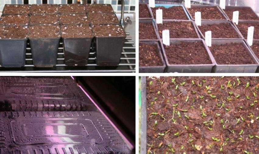 Сначала подготавливается ящик или горшок с субстратом, состоящим из 3 частей торфа и 1 части песка. Семена сеют на предварительно увлажненную почву и присыпают небольшим слоем промытого песка. Ящик накрывают стеклом и помещают на подоконник или другое хорошо освещаемое место. Необходимо следить за увлажненностью субстрата, один раз в день открывать посевы для проветривания, протирать поверхность стекла, на котором скапливается конденсат.