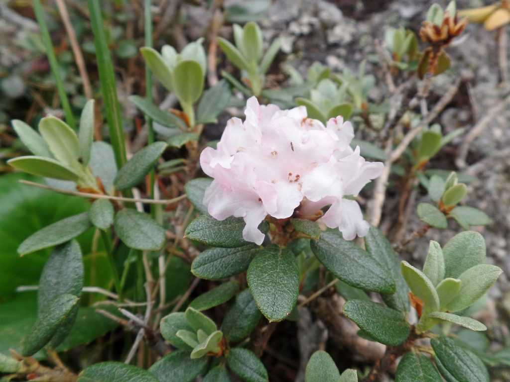 Этот вид рододендрона отличается тем, что не сбрасывает листья на зиму, а они всего лишь сворачиваются, возвращаясь весной к исходной форме.
