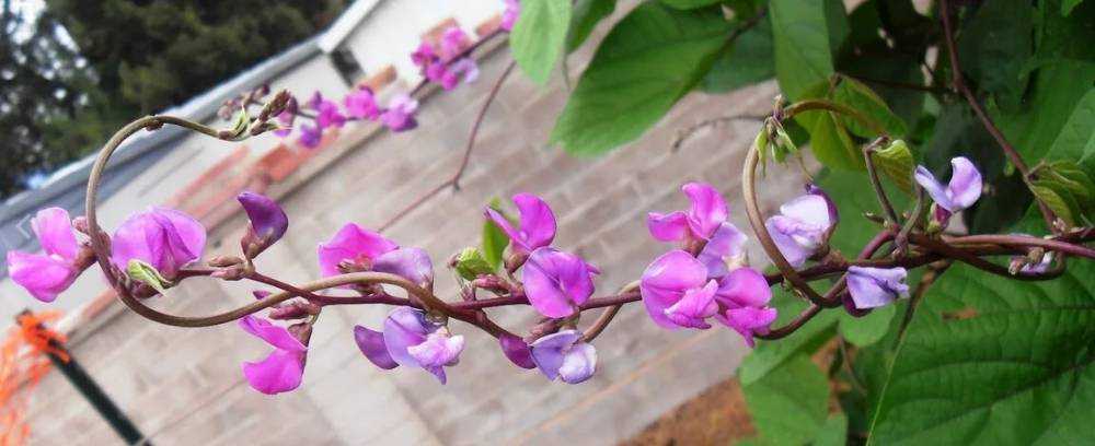 Побеги рубиновой луны, как и плети сорта красный водопад, достигают 4 м. Розово-фиолетовые венчики долихоса собраны в длинные пушистые кисти.