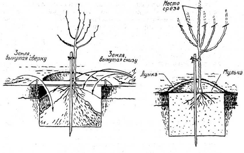 Если осенью нет возможности посадить саженец, то его прикапывают на зиму под углом, а сажают весной