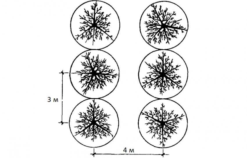 Вишни этого сорта сажают на расстоянии в 3 м друг от друга и с 4-метровыми междурядьями.