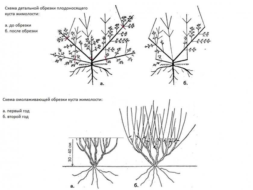 Существует также наглядная схема, как обрезать жимолость осенью. Выглядит она следующим образом: